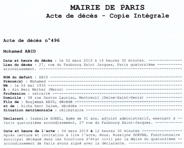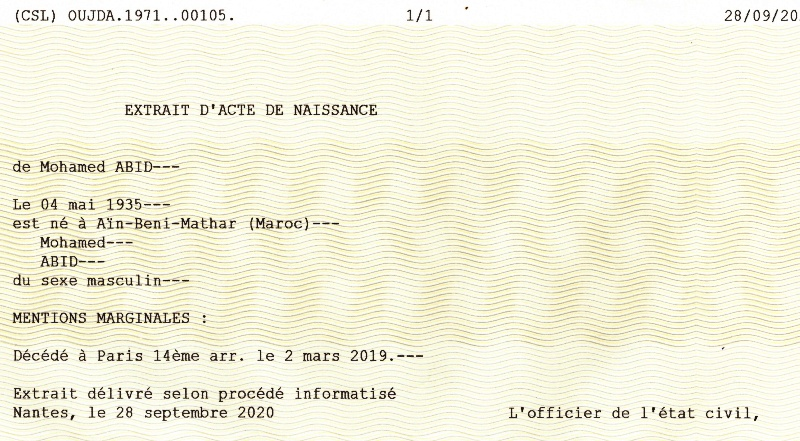 1935 Acte de naissance (Ain Beni Mathar, Maroc)