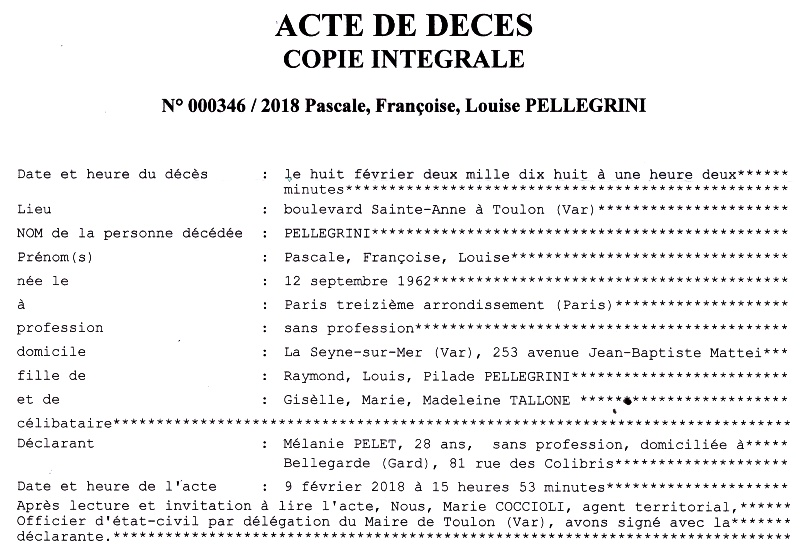 2018 Acte de décès (Toulon, France)