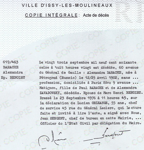 1976 Acte de décès (Issy-les-Moulineaux, France)