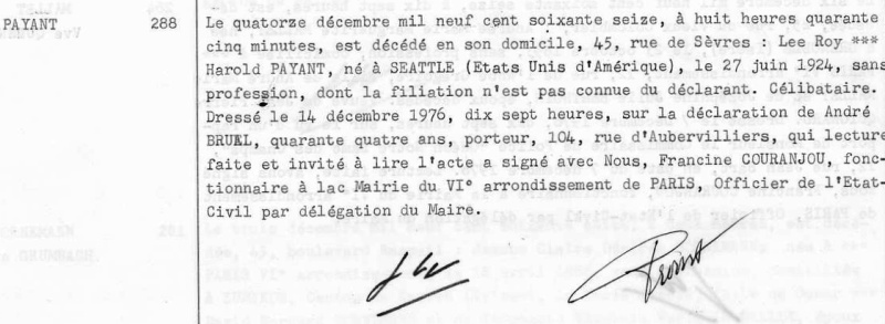1976 Acte de décès (Paris 6ème, France)