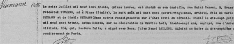 1930 Acte de décès (Paris 17ème, France)