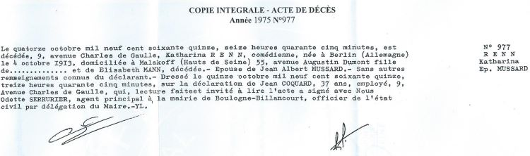 1975 Acte de décès (Boulogne-Billancourt, France)