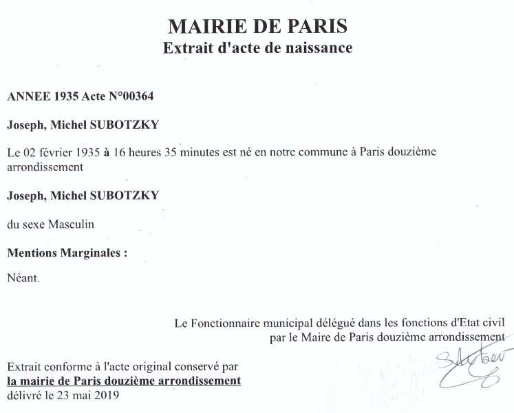 1935 Acte de naissance (Paris 12ème, France)
