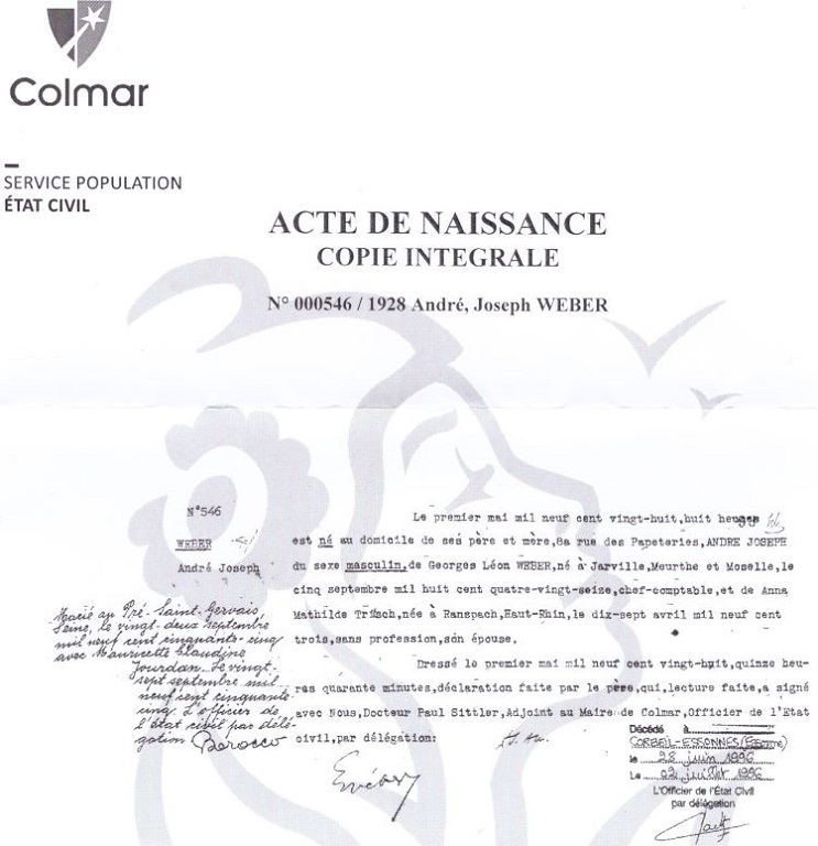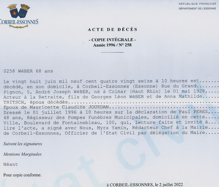 1996 Acte de décès (Corbeil-Essonnes, France)