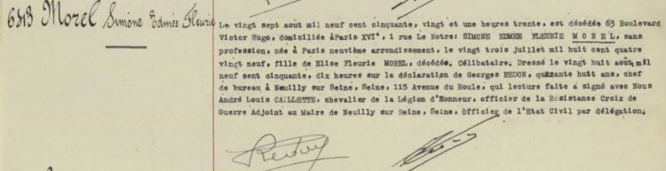 1950 Acte de décès (Neuilly-sur-Seine, France)