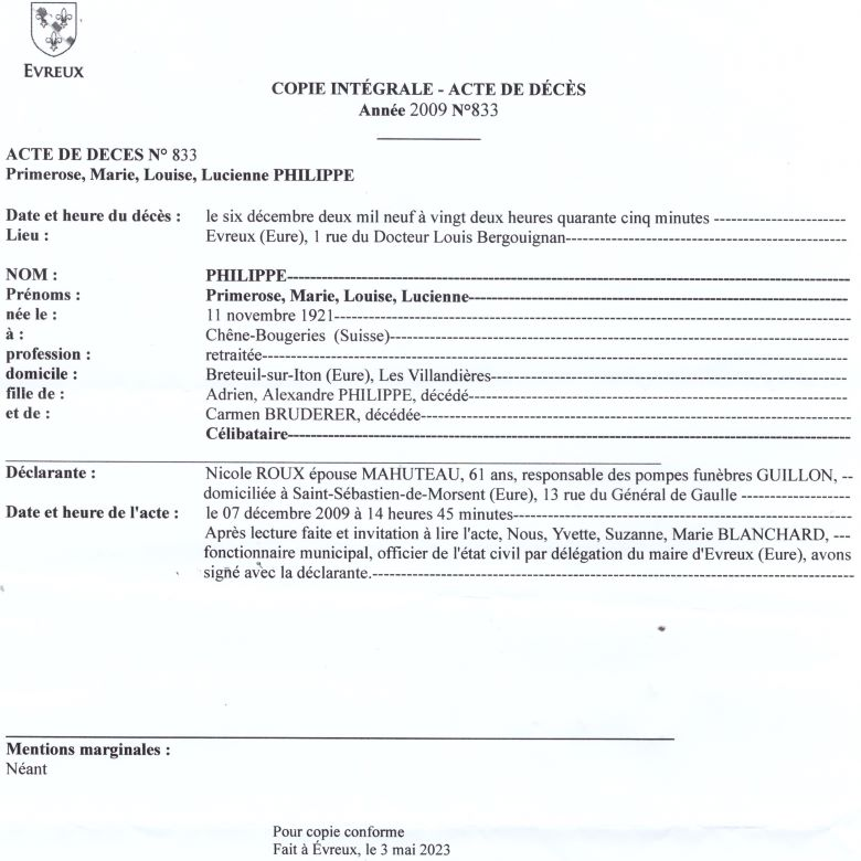 2009 Acte de décès (Evreux, France)