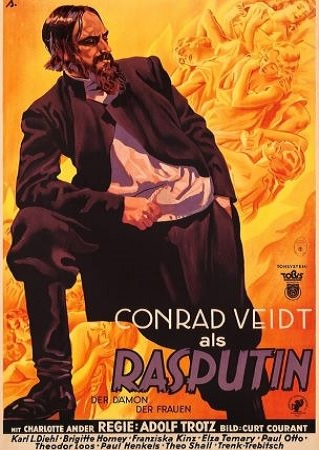 ![]() 1922 Pierre le grand (Peter der große) de Dimitri Buchowetzki avec Emil Jannings, Dagny Servaes & Walter Janssen | ![]() 1924 Les mains d’Orlac (Orlacs hände) de Robert Wiene avec Conrad Veidt, Paul Askonas, Hans Homma & Fritz Kortner | ![]() 1928 Die schönste frau von Paris – de Luise Fleck & Jacob Fleck avec Werner Fuetterer & Rudolf Klein-Rogge | ![]() 1930 Raspoutine (Raspoutin – Der dämon der frauen) de Adolf Trotz avec Conrad Veidt & Bernhard Goetzke | ||