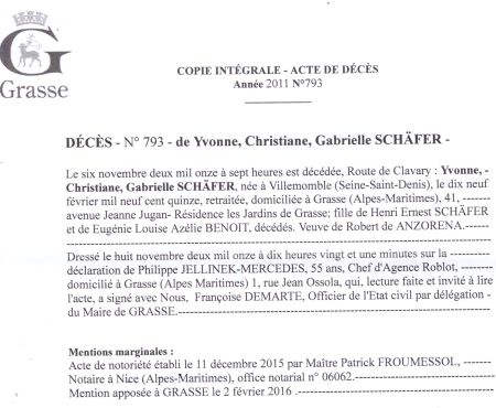 2011 Acte de décès (Grasse, France)