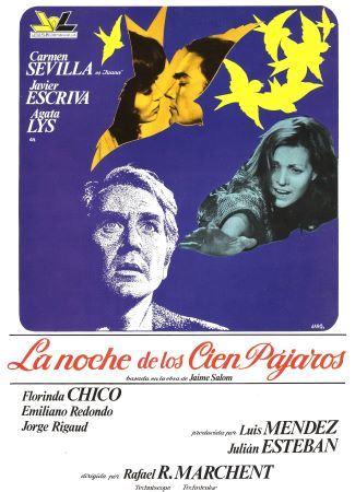 ![]() 1959 Molokai, île maudite (Molokai, la isla maldita) de Luis Lucia avec Gérard Tichy & Nani Fernández | ![]() 1973 El chulo – de Pedro Lazaga avec Silvia Tortosa, Nadiuska, Perla Cristal, Helga Liné & Pilar Bardem | ![]() 1976 Adulterio a la española – de Arturo Marcos avec Elisa Ramírez, Manuel Zarzo, Tomás Blanco & Pepe Ruiz | ![]() 1976 La noche de los cien pájaros– de Rafael Romero Marchent & Rafael Moreno Alba avec Carmen Sevilla | ||