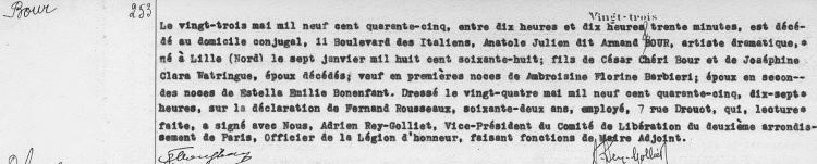 1945 Acte de décès (Paris 2ème, France)