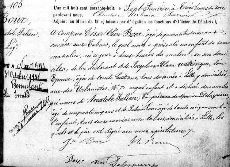 1868 Acte de naissance (Lille, France)