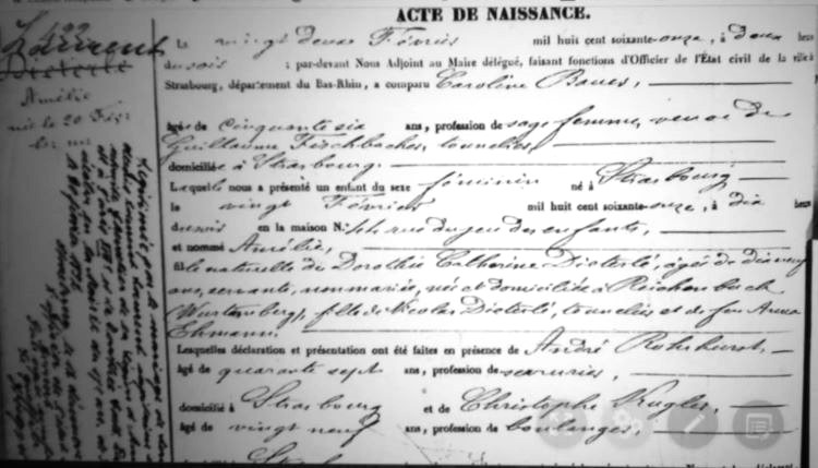 1871 Acte de naissance (Strasbourg, France)
