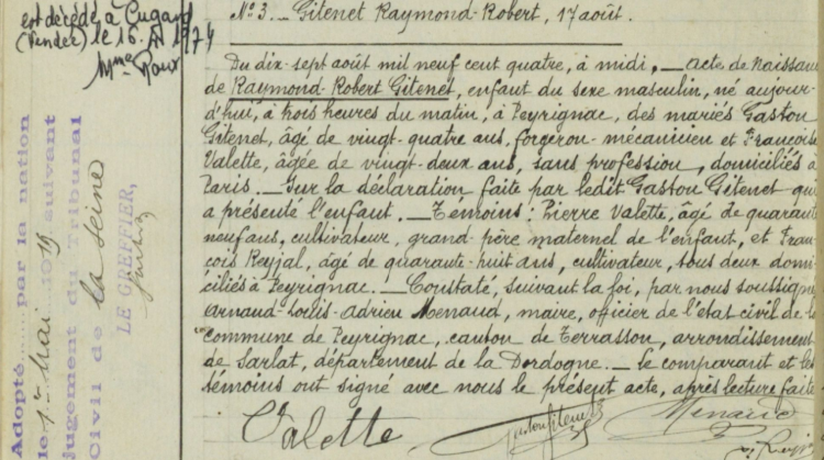 1904 Acte de naissance (Peyrignac, France)