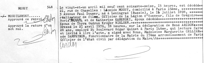 1976 Acte de décès (Paris 17ème, France)