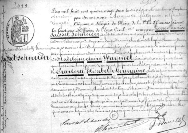 1882 Acte de naissance (Amiens, France)