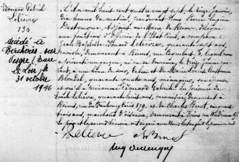 1946 Acte de décès (Berchères-sur-Vesgre, France)