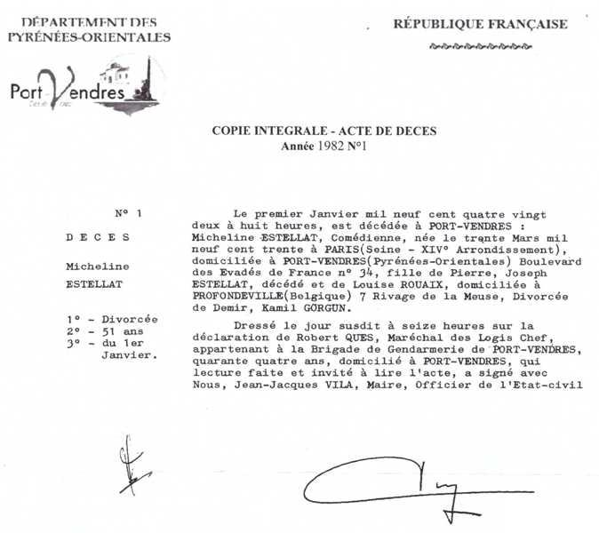 1982 Acte de décès (Port-Vendres, France)