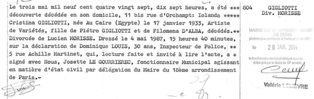 1987 Acte de décès (Paris 18ème, France)