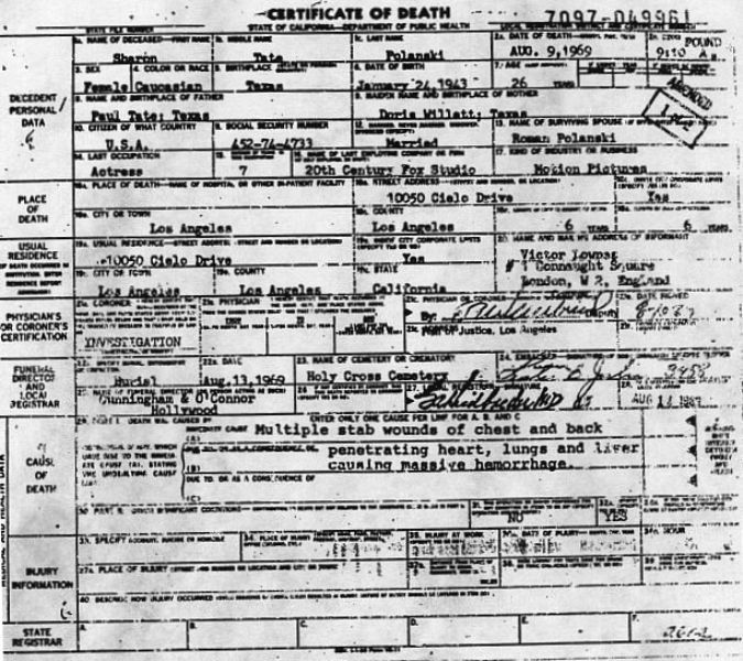 1969 Acte de décès (Beverly Hills, Californie, USA)