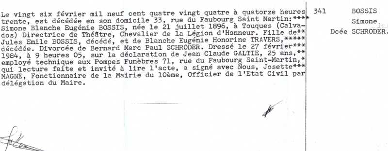 1984 Acte de décès (Paris 10ème, France)