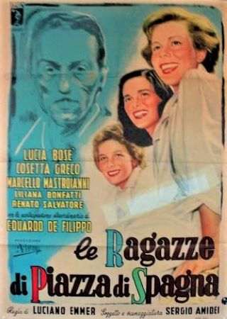 ![]() 1951 Les fiancées de Rome (le ragazze di Piazza di Spagna) de Luciano Emmer avec Renato Salvatori & Lucia Bosè | ![]() 1952 Les héros du dimanche (gli eroi della domenica) de Mario Camerini avec Raf Vallone & Paolo Stoppa | ![]() 1953 En amour, on pèche à deux (in amore si pecca in due) de Vittorio Cottafavi avec Vera Carmi & Giorgio De Lullo | ![]() 1955 Les amoureux (gli innamorati) de Mauro Bolognini avec Nino Manfredi & Franco Interlenghi | ||
