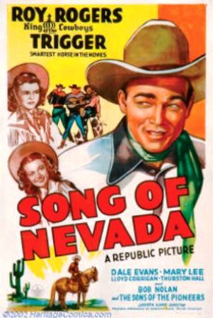 ![]() 1944 Le chant du Nevada (song of Nevada) de Joseph Kane avec Roy Rogers, Lloyd Corrigan, Mary Lee & Thurston Hall | ![]() 1945 Oklahoma (the man from Oklahoma) de Frank McDonald avec Roy Rogers, Si Jenks & George Gabby Hayes | ![]() 1946 Le troubadour du Texas (rainbow over Texas) de Frank McDonald avec Roy Rogers & George Gabby Hayes | ![]() 1949 Le pétrole qui tue (Susanna Pass) de William Witney avec Roy Rogers & Estelita Rodriguez | ||
