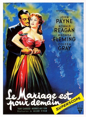 ![]() 1941 Week-end à la Havane (week-end in Havana) de Walter Lang avec Carmen Miranda & Alice Faye | ![]() 1945 Les Dolly Sisters (the Dolly Sisters) de Irving Cummings avec June Haver, Betty Grable | ![]() 1952 Le trésor des Caraïbes (Carribbean) de Edward Ludwig avec Arlene Dahl & Cedric Hardwicke | ![]() 1955 Le mariage est pour demain (Tennessee’s partner) de Allan Dwan avec Ronald Reagan & Rhonda Fleming | ||