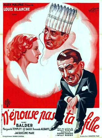 ![]() 1933 N’épouse pas ta fille – de Willy Rozier avec Marguerite Templey, Fernande Albany, Adrien Le Gallo & Balder | ![]() 1934 Trois cents à l’heure – de Willy Rozier avec Dorville, Mona Goya, Odette Talazac & Madeleine Guitty | ![]() 1936 Une femme qui se partage – de Maurice Cammage avec Jeanne Aubert, Pierre Brasseur & Odette Joyeux | ![]() 1948 L’assassin est à l’écoute – de Raoul André avec Louise Carletti, Francis Blanche & Marguerite Moreno | ||