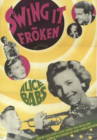 ![]() 1940 Mademoiselle Swing et son professeur (Swing it Magistern) de Schamyl Bauman avec Adolf Jahr | ![]() 1941 Un réseau de femmes de chambres (en trallande jänta) de Börje Larsson avec Annalisa Ericson & Nils Kihlberg | ![]() 1946 La joyeuse partie (det glada kalaset) de Bengt Ekerot & Lennart Wallén avec Sven Lindberg & Sickan Carlsson | ![]() 1956 Mademoiselle Swing et son élève (Swing it, fröken!) de Stig Olin avec Ingvar Kjellson & Pia Skoglund | ||
