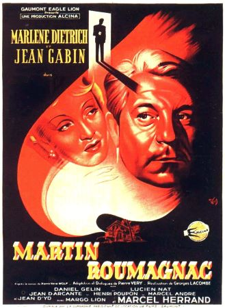 ![]() 1938 Café de Paris – de Yves Mirande avec Véra Korène, Jules Berry, Pierre Brasseur & Jacques Baumer | ![]() 1942 Le journal tombe à cinq heures – de Georges Lacombe avec Pierre Fresnay, Marie Déa & Pierre Renoir | ![]() 1946 Martin Roumagnac – de Georges Lacombe avec Marlene Dietrich, Jean Gabin, Jean d’Yd & Margo Lion | ![]() 1952 L’appel du destin – de Georges Lacombe avec Jean Marais, Roberto Benzi, Renée Devillers & Fernand Sardou | ||