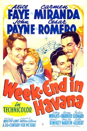 ![]() 1941 Week-end à la Havane (week-end in Havana) de Walter Lang avec Carmen Miranda & Alice Faye | ![]() 1945 Les Dolly Sisters (the Dolly Sisters) de Irving Cummings avec June Haver, Betty Grable | ![]() 1952 Le trésor des Caraïbes (Carribbean) de Edward Ludwig avec Arlene Dahl & Cedric Hardwicke | ![]() 1955 Le mariage est pour demain (Tennessee’s partner) de Allan Dwan avec Ronald Reagan & Rhonda Fleming | ||