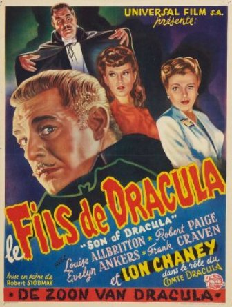 ![]() 1942 Danger dans le Pacifique (danger in the Pacific) de Lewis D. Collins avec Leo Carrillo, Andy Devine & Don Terry | ![]() 1943 Le fils de Dracula (son of Dracula) de Robert Siodmak avec Lon Chaney Jr., Robert Paige & Evelyn Ankers | ![]() 1946 Tanger (Tangier) de George Waggner avec Maria Montez, Preston Foster, Sabu & Kent Taylor | ![]() 1947 Bonne à tout faire (sitting pretty) de Walter Lang avec Clifton Webb, Robert Young & Maureen O’Hara | ||