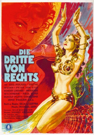 ![]() 1950 Une fille du tonnerre (die dritte von rechts) de Géza von Cziffra avec Robert Lindner & Peter van Eyck | ![]() 1951 Le rêve multicolore (der bunte traum) de Géza von Cziffra avec Josef Meinrad, Oskar Sima & Walter Giller | ![]() 1952 Où est la liberté? (dov’è la libertà…?) de Roberto Rossellini avec Totò, Nyta Dover & Leopoldo Trieste | ![]() 1953 Das vetter aus Dingsda – de Karl Anton avec Gerhard Riedmann, Grethe Weiser & Joachim Brennecke | ||