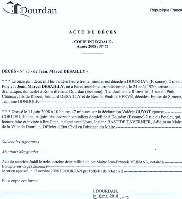 2008 Acte de décès (Dourdan, France)