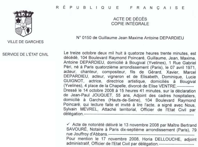 2008 Acte de décès (Garches, France)