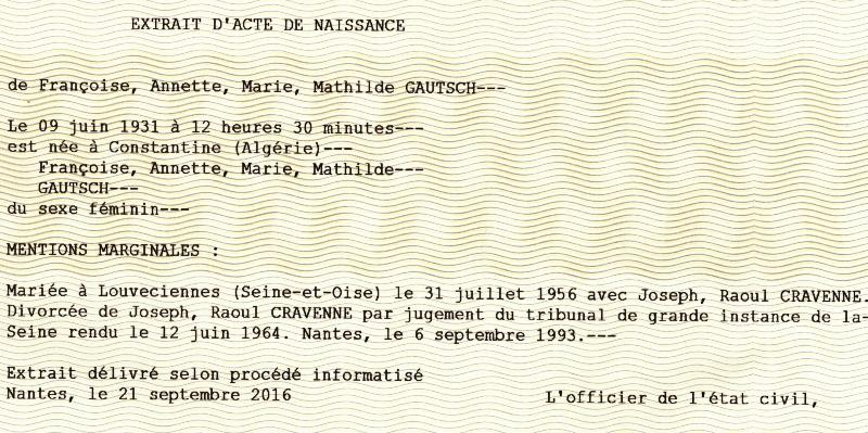 1931 Acte de naissance (Constantine, Algérie Française)