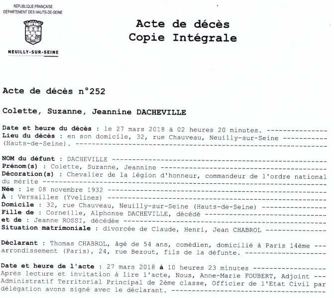 2018 Acte de décès (Neuilly-sur-Seine, France)