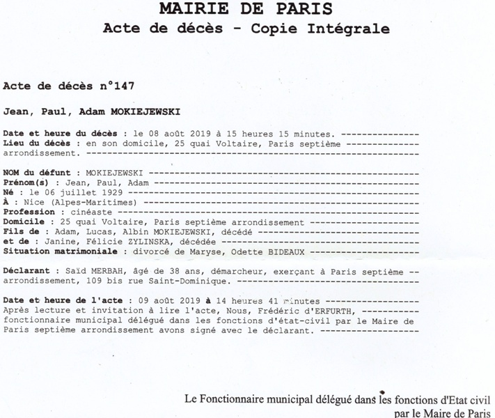 2019 Acte de décès (Paris 7ème, France)
