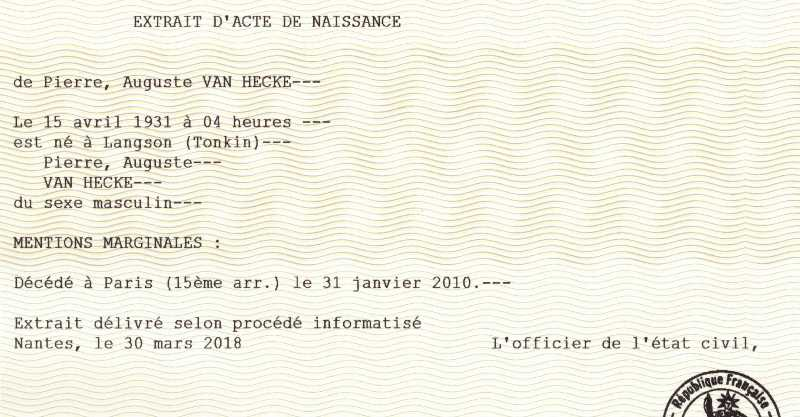 1931 Acte de naissance (Lang Son, Tonkin, Indochine Française)