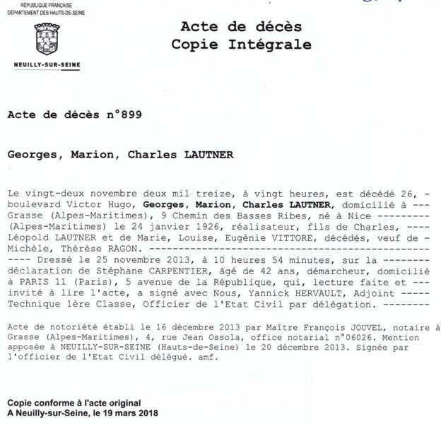 2013 Acte de décès (Neuilly-sur-Seine, France)