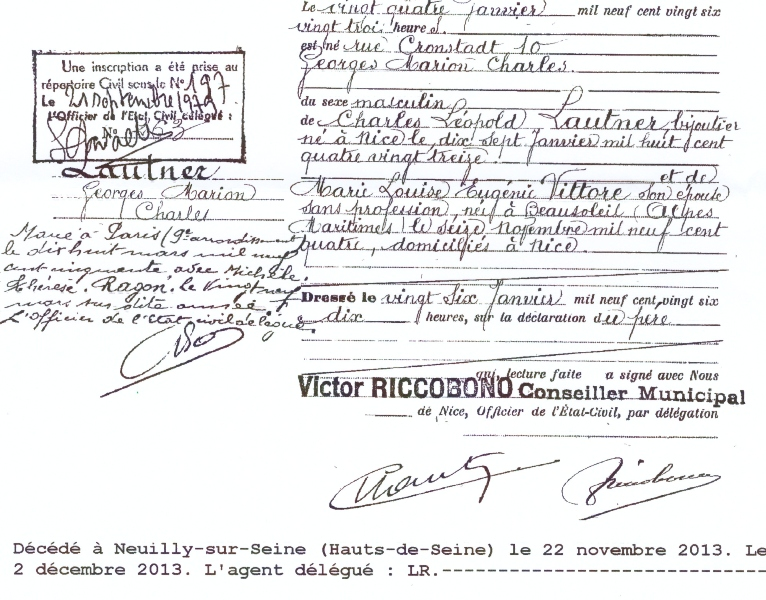 1926 Acte de naissance (Nice, France)