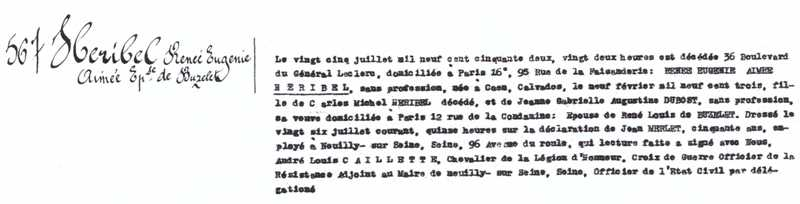 1952 Acte de décès (Neuilly-sur-Seine, France)