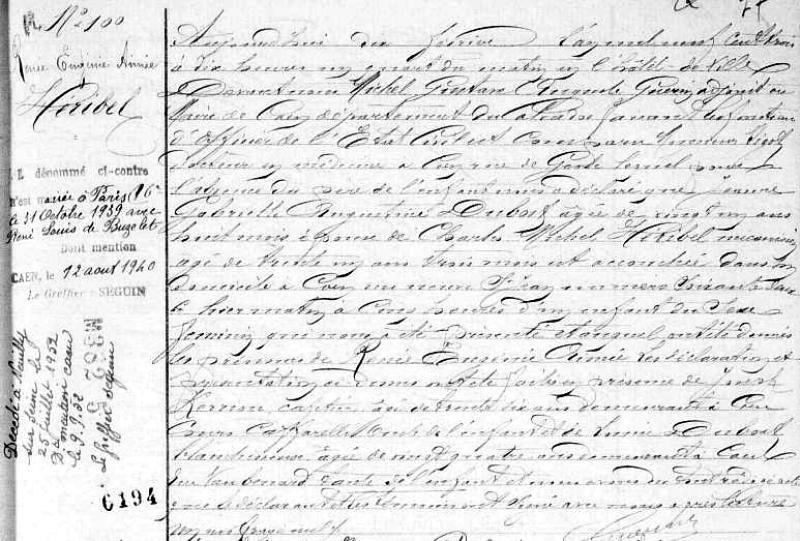 1903 Acte de naissance (Caen, France)