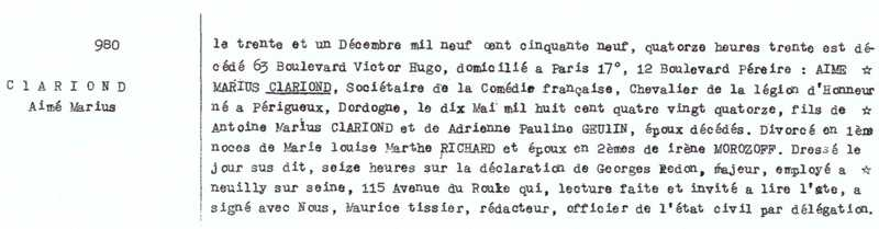 1959 Acte de décès (Neuilly-sur-Seine, France)