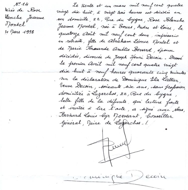 1998 Acte de décès (Luzarches, France)