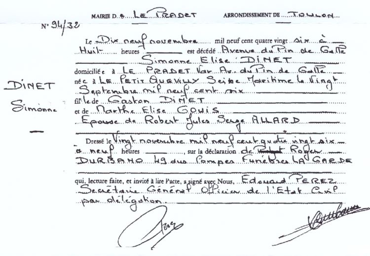 1986 Acte de décès (Le Pradet, France)