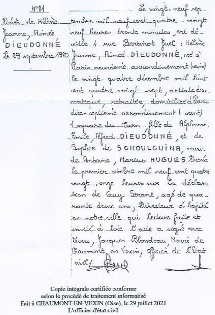 1980 Acte de décès (Chaumont-en-Vexin, France)