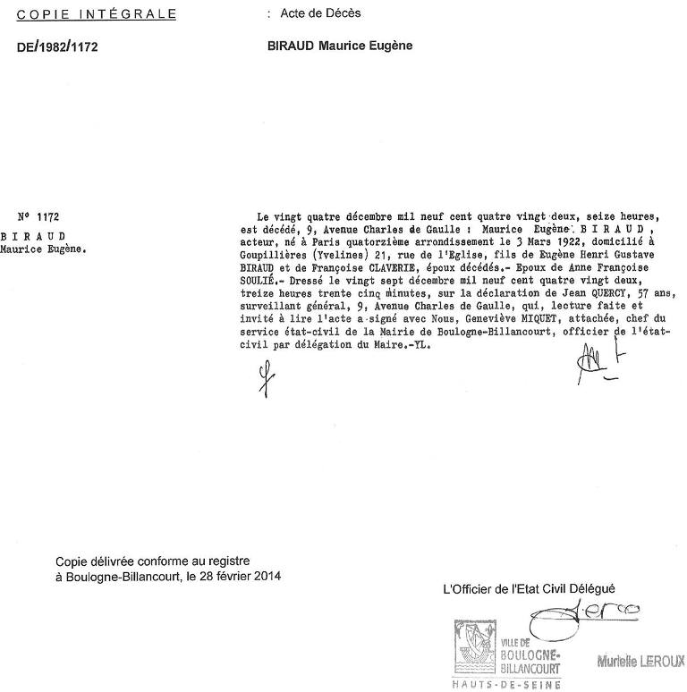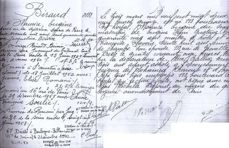1982 Acte de décès (Boulogne-Billancourt, France)