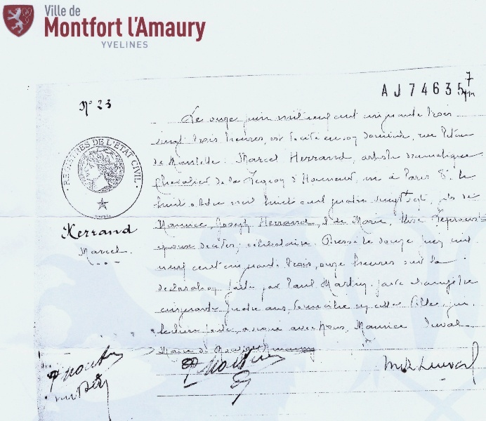 1953 Acte de décès (Montfort-L’Amaury, France)