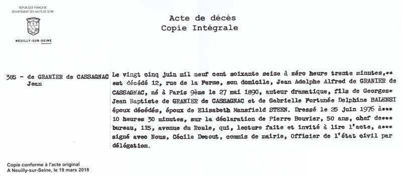 1976 Acte de décès (Neuilly-sur-Seine, France)